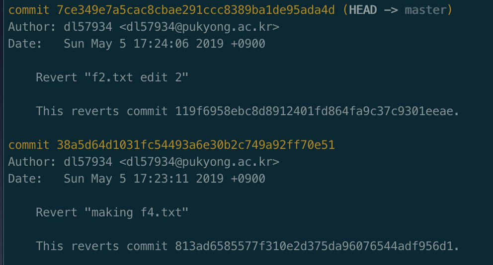 위의 명령어를 통해서 과거로 되돌아 갈 수 있습니다.